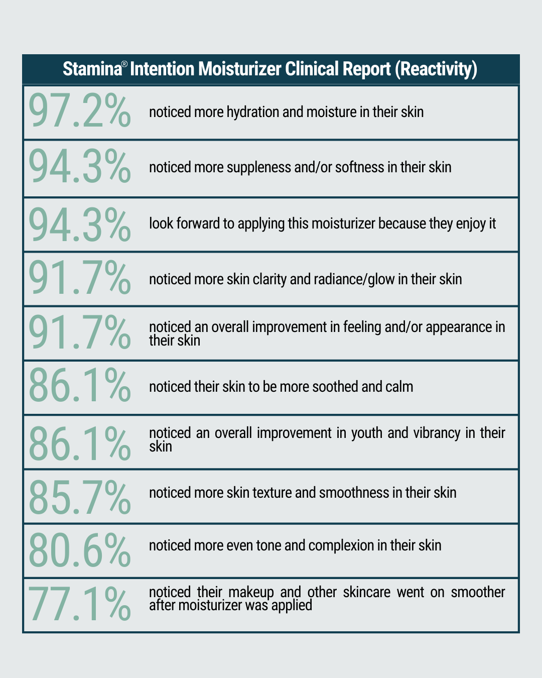 Stamina® Intention Moisturizer is clinically proven to soothe, repair, and strengthen sensitive and reactive skin